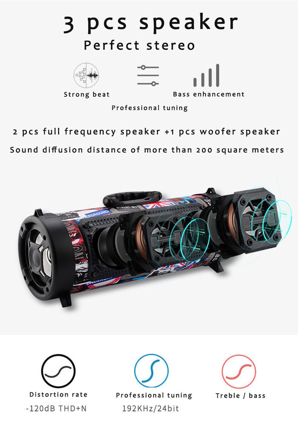 Portable Wireless Speaker Stereo Subwoofer with KTV 3D Sound Effect FM Radio